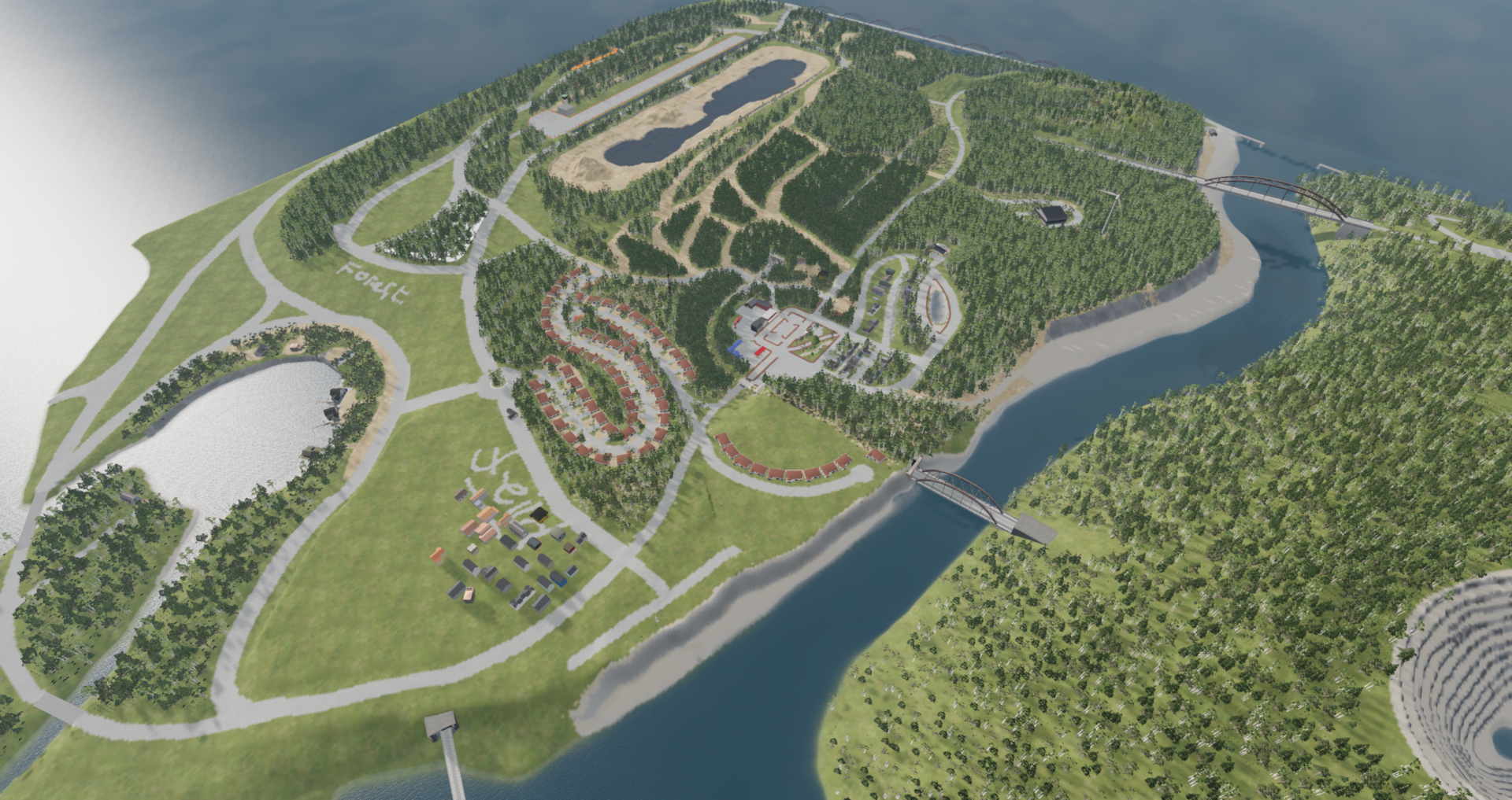 Small Town Progression Update Since last update there has been a couple additions recycle centre housing estate -still in progression lake side housing -still in progression extension on usable track layout - still in progression Small town bunker still - still in progression Construction area to be developed over time after map release Still to do Finish usable track layout final details to housing estate bus and cargo logistics final details to lake side housing light house island final roads to be added street lights 15% done