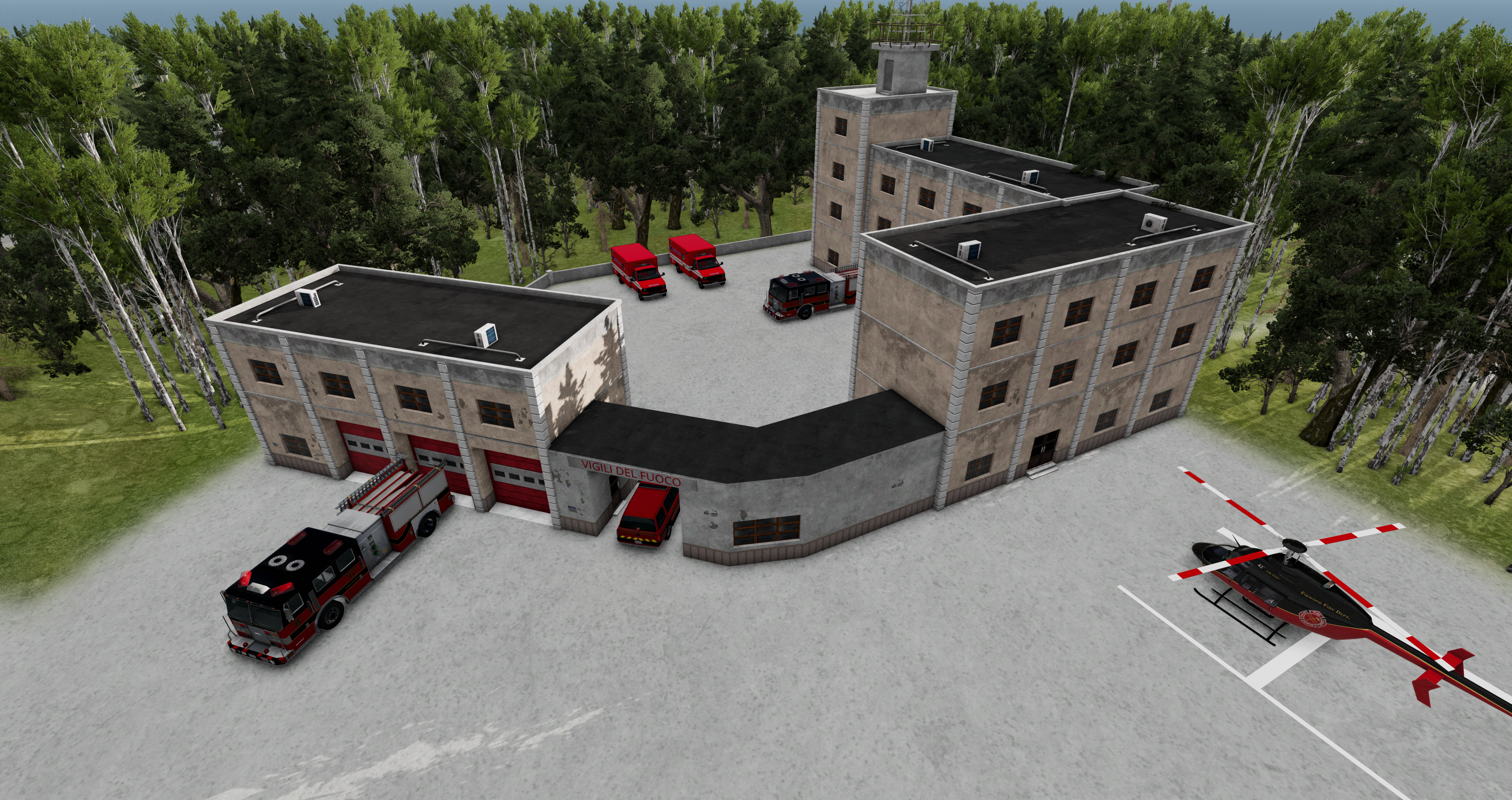 The map is still in early development but their will be more buildings like housing,hospital,firestation,policestation,trainstation. for the design of the map their might not be space for a prison but its too early to tell yet.