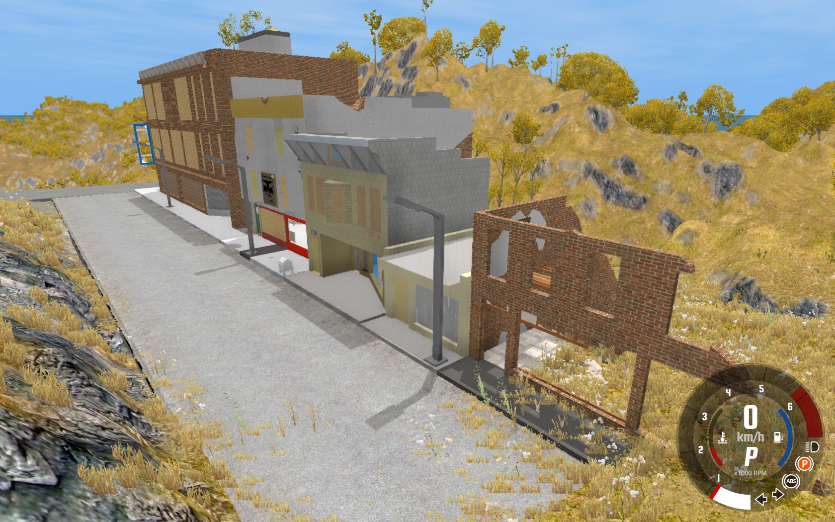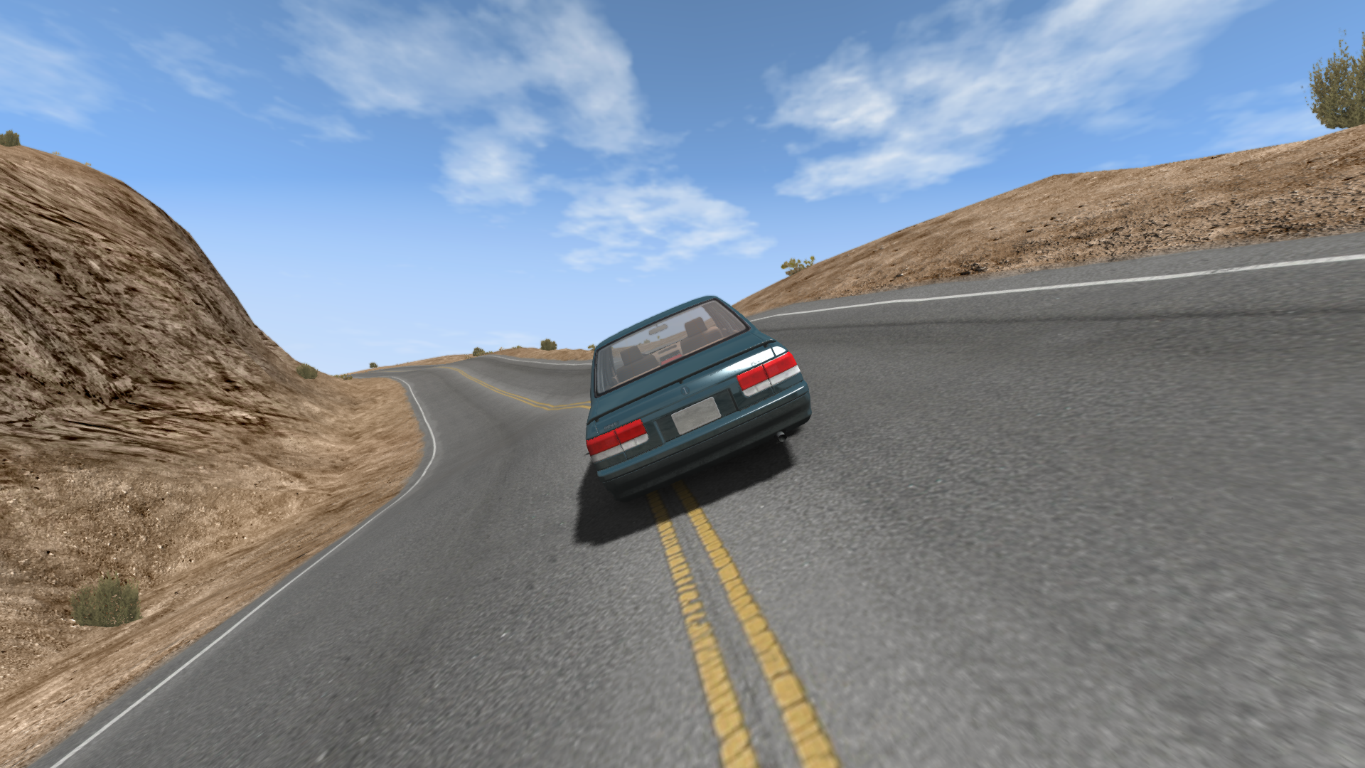 Road to the right of the spawn, the small 2-lane road, that hill going down isn't the best, but it's really supposed to be a 35~40mph section until about a quarter mile past the bridge. It will be smoothed out just a bit more. Wavy-ness isn't too bad but sharp bumps/dips/car tossers gotta go. There's a few hills in this map that look more like ocean waves, those ARE deliberate - and just for fun (they also are on otherwise boring rural side-roads). You will be able to bypass these a bit more readily in one spot (where there is already a bypass) in a later version of the map. They will remain, however, as an 'option'. Try getting the 800hp SBR4 mod, and blasting as fast as you can off some of them, heh heh. Hold gas to angle the nose up, or hold brake to nose dive the car. Can make some great wrecks with these :x