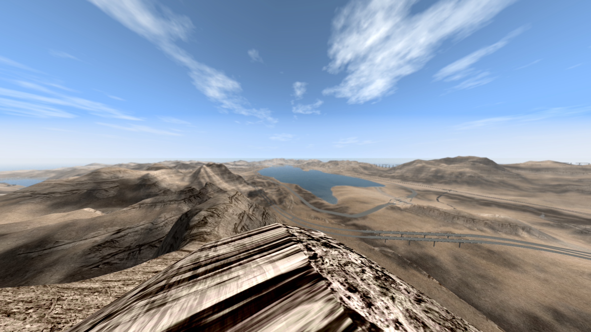 I will make sure these get touched up. The road, on pic 4, I think that's the south side of the map, where it goes up the hill to the left, is a bit bumpy where the incline starts, that has to be worked out, too. There's a few bumps on the east side, right after a four-lane goes under the highway (not on the highway itself, though), that also must be leveled out a bit. Things like bridges without pillars, or abutments (walls under each end of the bridge), are things that just aren't finished yet. I was working positively toward a deadline, and had some glitches come up at the last minute (literally), fixing this didn't spare me time for extra eye-candy. Work will continue, however, in a positive manner. Trails and a few more surface streets, another interchange or two (as needed) may be installed also. A town also needs to be built. Thank-you for trying the map out, and hope you enjoy it.