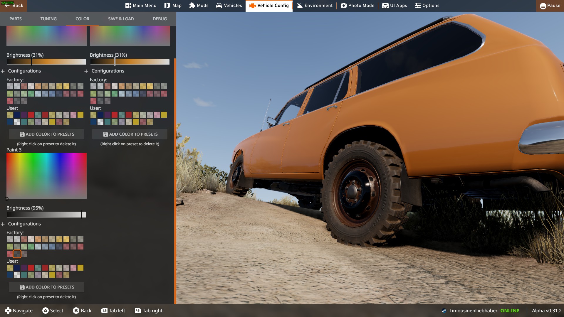 Wonderful cars, both of them! I really really find those to be a needed addition to the game! (because the Miranmar is so neglected!) Found only some minor things! - Rear Hatch of TAZ Zignet Wagon refuses to close after opening via action box: - Mirrors are very "floppy" as they jitter and shake after opening and closing doors as well as on higher speeds - When adjusting the Colour on "16x5 Steel Front Wheels (Colorable)" to darker colors, it seems like there is rust or something shining through: What I would love to see the most, maybe as inspiration: -More Smoke from the Diesel Variants (its the cleanest Diesel in all of Soviet Union) -Option for Jerry Cans and Spare wheels in a Cargo Basket (as in the Gavril Roamer for example) -Option for Trunk Loads with small Cargo Boxes -Option for higher Suspension parts (or Cut Fenders to make room for the bigger wheels) -Rectangular Rally Lights for the front Bumper -Rear Window Louvres -Deluxe Chrome Grill for Early Zignets -Tuning Carburetors Thank you so so much for this awesome mod!!! Greetings from Germany Alphaboomer