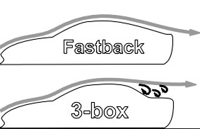 A fast back is basically just what the rear of the cabin looks like. The longer it slobes back, the less chance for a Second rear low pressure zone. As this image demonstrates: