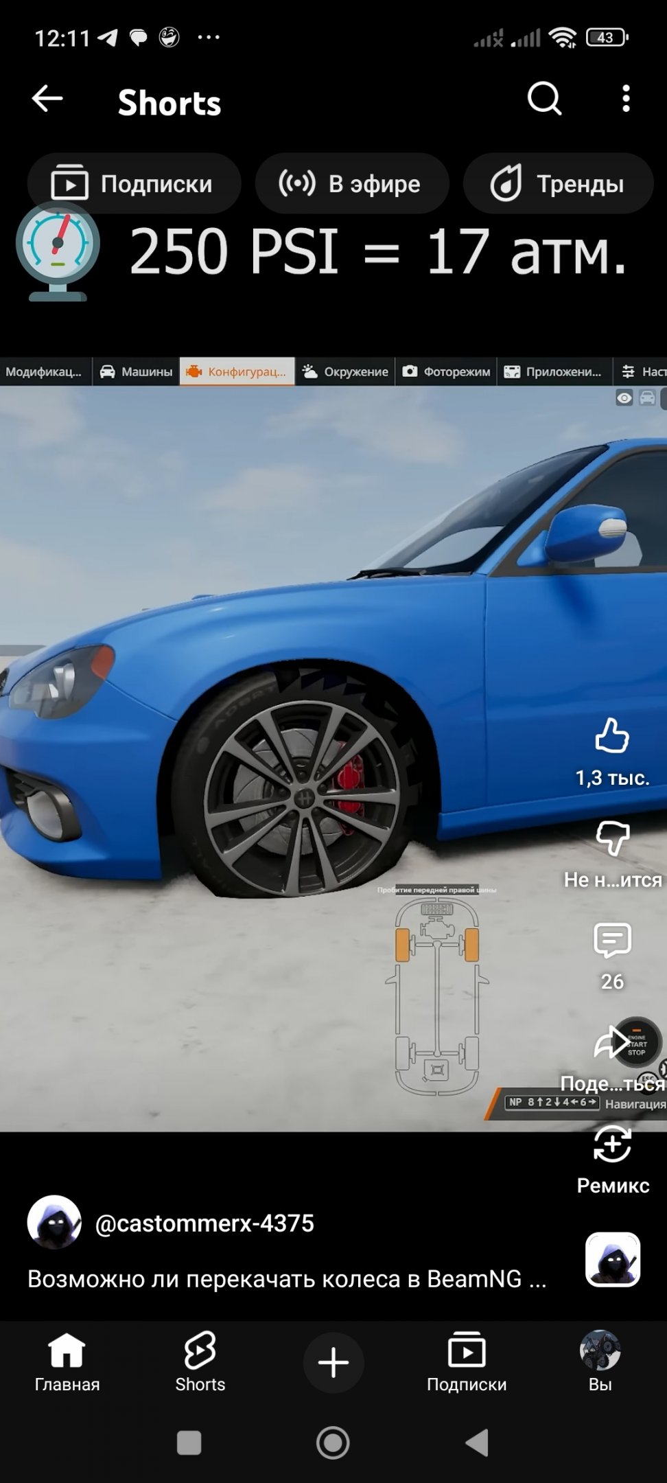 Great mod idea! However, I noticed an issue with how tires fail during a burnout or drifting. Currently, the tire just "deflates" (slowly loses pressure) until it's flat. In reality, during a burnout, the tire should "pop" or "delaminate" from the heat and friction, often jumping off the rim entirely. Right now, tires in the mod seem to only burst at extremely high pressures (like 225 PSI), which isn't how it works during a burnout. Could you adjust the logic so that instead of just losing air, the tire has a chance to physically "blow out" or "pop" once it reaches a certain temperature/wear threshold, even at normal pressures? This would make the drifting and burnout experience much more realistic. --- Post updated --- Great mod! I have a simple suggestion to make tire blowouts more realistic without complex physics changes. Currently, tires just deflate during burnouts, which feels wrong. Since BeamNG already has a built-in "burst" mechanic at high pressures (around 225 PSI), why not use that? Could you change the logic so that instead of deflating, the tire pressure gradually increases during high-friction situations? Specifically, when the wheels are spinning much faster than the car is moving (like during a burnout against a wall, holding brake/gas, or high-angle drifting). Once the pressure hits that 225+ PSI limit from the simulated heat, the tire will naturally "pop" and fly off the rim. This would perfectly simulate a tire bursting from a burnout using the game's existing mechanics