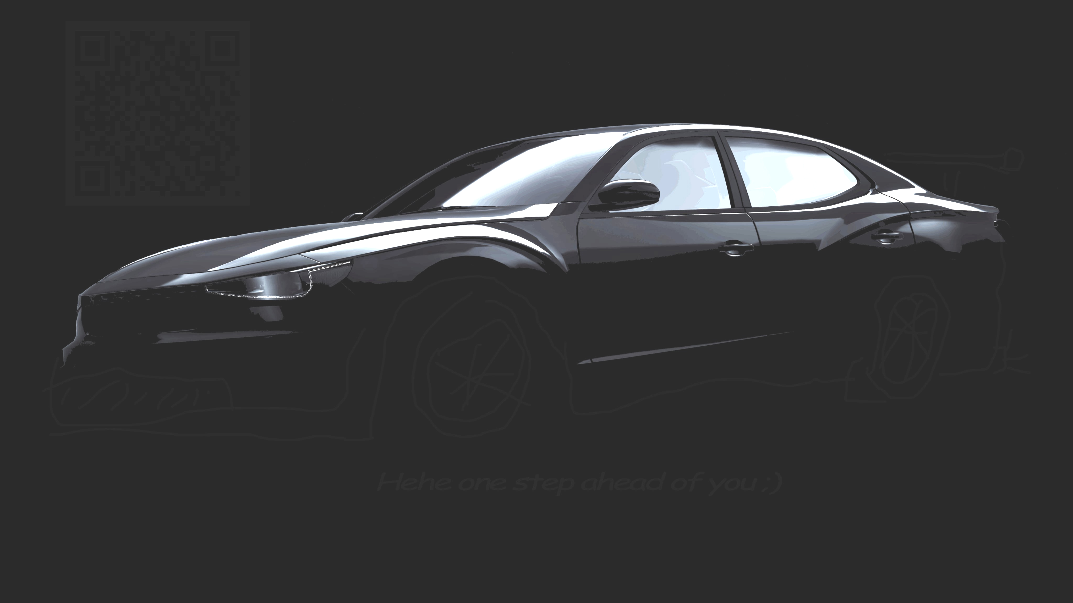 I would say the new car is probably nearly complete, if you look at the windows you can just barely make out headrests and a rear view mirror. We'll see this winter! Also note the text of the teaser tweet: a stereotypical American song with drag strip light trees. Muscle car.