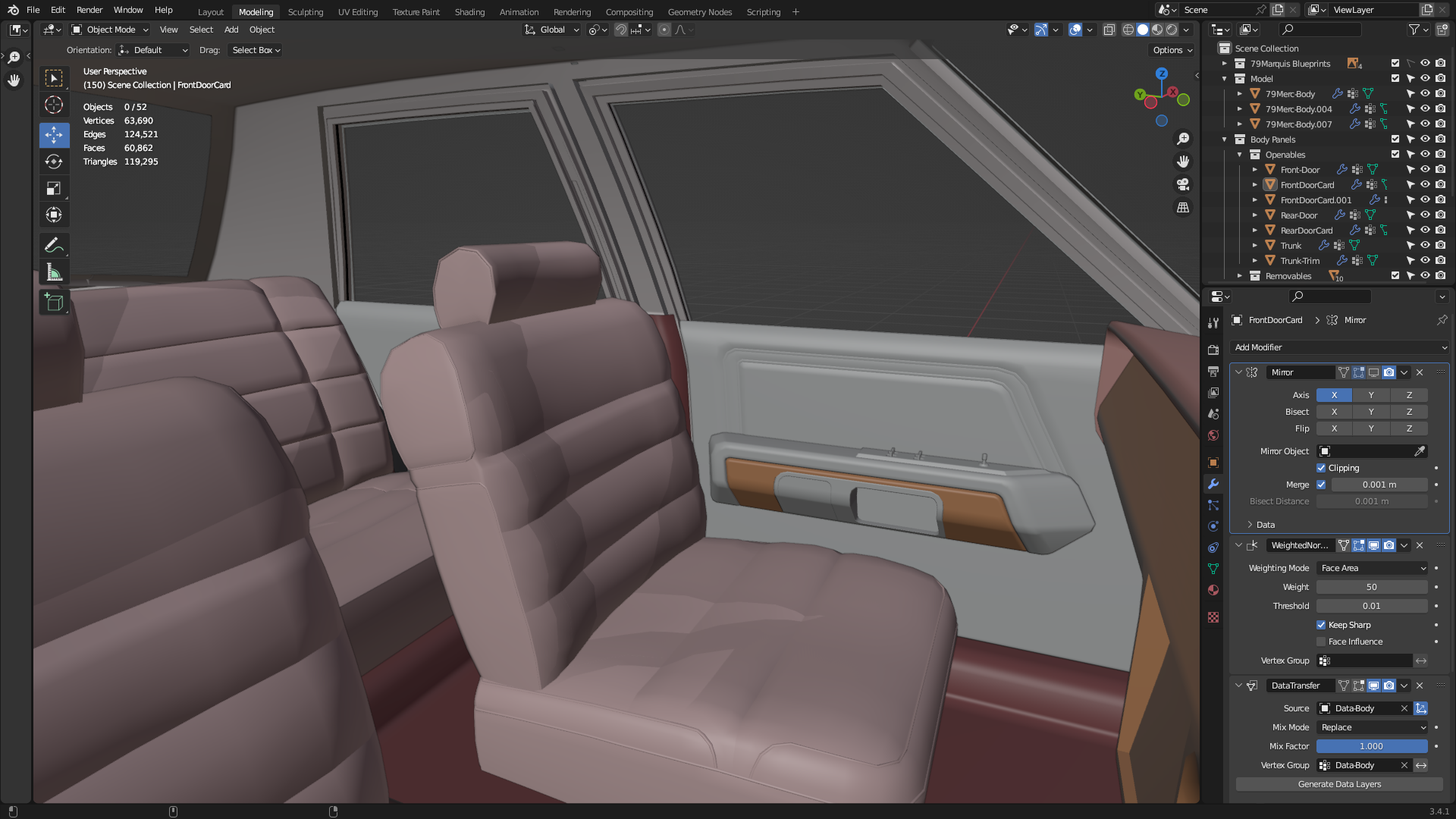 First-off, nice model! Those cars were like driving a couch around, with lots of room and comfort. Now, being that my late grandmother used to be head of a dealership (several), she said that the Mercury Grand Marquis had a tin frame for flexibility like the lincoln town-car, as they shared the same factory. The Crown Victoria (or LTD Crown-Vic pre-mid-80's) had a steel frame for stiffer handling. Now I do NOT know for sure if this was the case in the late 70's or 80's, but it was by the 90's. You could entirely make a Family Truckster (the Wagon Queen) out of that year crown victory or grand marquis, figured I'd mention that. Actually, that might end up being more popular than the regular version. The protagonist and family drove one in the movie National Lampoon's Vacation for those who are curious (not sure if it's just 'Vacation' or 'Vegas Vacation', old brain issues here). The source vehicle was originally a Crown Victoria station wagon.