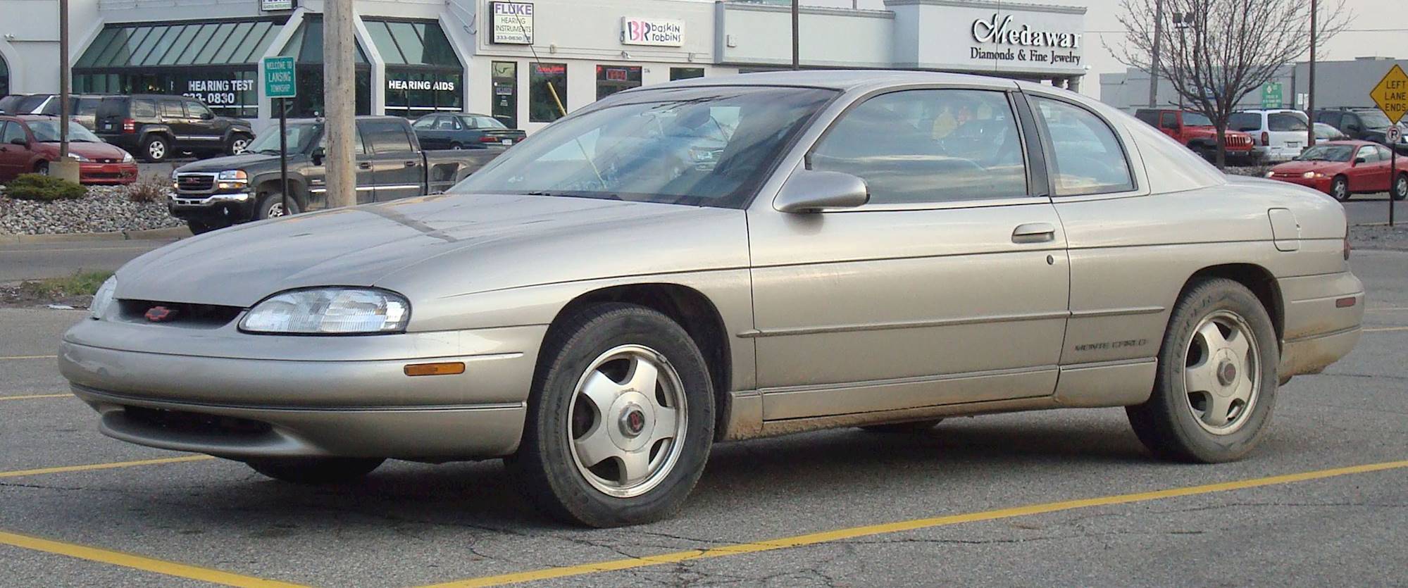 1994 - 2000 Bruckell La Condamine (Based off the 1998 Chevrolet Monte Carlo and the 1996 Ford Thunderbird) "This RWD 2 door coupe was the result of Bruckell's attempt to make a cheap luxury car with some muscle under the hood. It's a shame that the only things the La Condamine is know for now is being Donked out in Ghettos or covered in Stock Car Stickers in trailer parks." Trims: Donk: This modified V8 La Condamine was put on 26 inch rims and incredibly thin tires by someone who doesn't have much taste. It also comes with a very shiny red paint job with white pin stripes, whitewalls, neon, massive speakers, and a bright red and white interior. The engine might make 235hp, but a lot less then that is actually getting to the rear wheels. V6: The V6 is the base model of the La Condamine, and as the name suggests, it is given a 3.1L 160hp V6 and a 4 speed automatic transmission. It has bare essentials, even the Radio and Air Conditioner were options. V6S: The V6S La Condamine is the sport version of the regular V6 model. It comes with a 3.4L 210hp DOHC V6 and a 4 speed automatic transmission, along with bigger brakes, thicker tires, and colored plastic trim along the doors. Banger: This modified V6S La Condamine was built by a few rednecks who love 3 things, cheap beer, pretty women, and fast cars. It has a stripped interior, a single bucket seat for the driver, a roll cage, steelies, very thick semi-slick tires, a heavily modified 5.7L Carburated V8 that makes over 600hp, a 4 speed manual transmission, a large number 13 spray painted on the doors and roof, and tons of stickers on the front fenders, trunk, rear bumper, and hood. V8: The V8 La Condamine is the most common La Condamine you will see. It was given a 4.3L 235hp V8 and a 4 speed automatic transmission and plenty of options, like Leather seats, wood trim, alloy wheels, power mirrors, power locks, power windows, and ABS, even though ABS was standard on all La Condamines after 1996. SC: The SC is the Supercharged Model of the La Condamine that was made in 1996 and 1997. It came with a Supercharged 5.0L V8 making 277hp and the option of a 4 speed automatic or 5 speed manual transmission and includes all the options the regular V8 model had. Exterior and Interior: (Based off the V8 model)