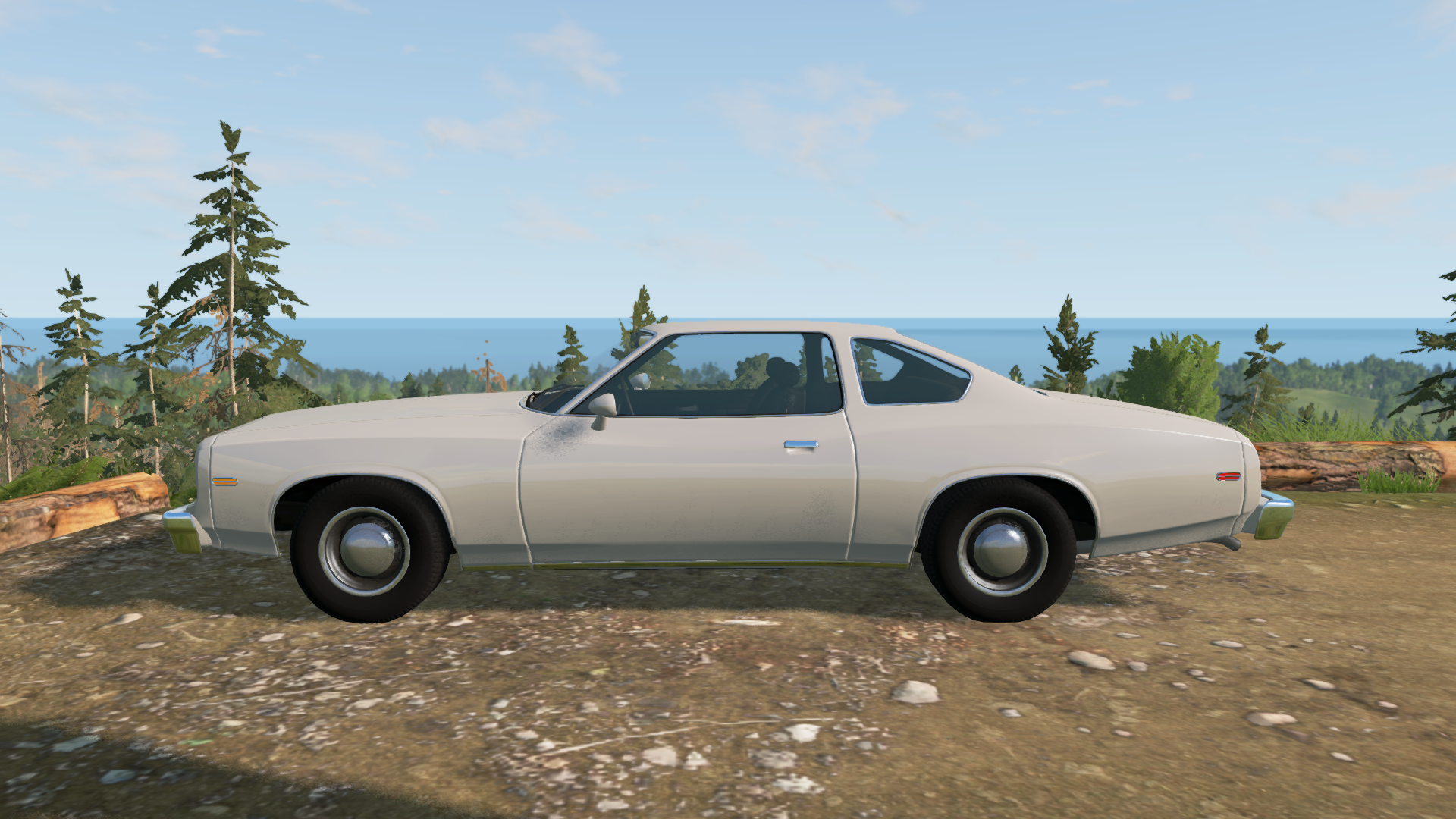 Current default is something pretty basic for casual driving. A run of the mill Moonhawk with trim ringed black steelies, capped with small smoothie wheel covers. powered by a 4 barrel carbureted 378cui V8, coupled to a 3 speed automatic (with shifter on the column), and capable of doing some small peg-leg burnouts. The chosen color sort of references the former default white D15 that used to be in previous versions of Beam on a fresh install.