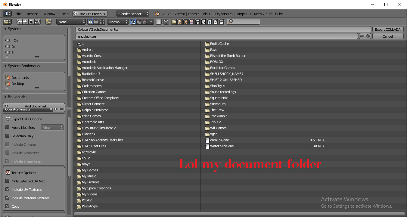 Of you saw my other post( http://www.beamng.com/threads/corolla-jdm-weird-wheel-origin-problem.30113/ ) You can see the texures. I had just added a turbo, and was so happy when started to drive, and heard a blow off valve. Because i have never added a turbo before. But anyways, after that i went into blender, added some little tweaks, and exported it. But when i did, i clicked these boxes The two boxes above COPY (My name is Adam not Zach fyi) And when i did, i tested my car, and i see this So how can i fix this? iv tried exporting the collada again without those boxes checked, but it still won't work. Any help guys?